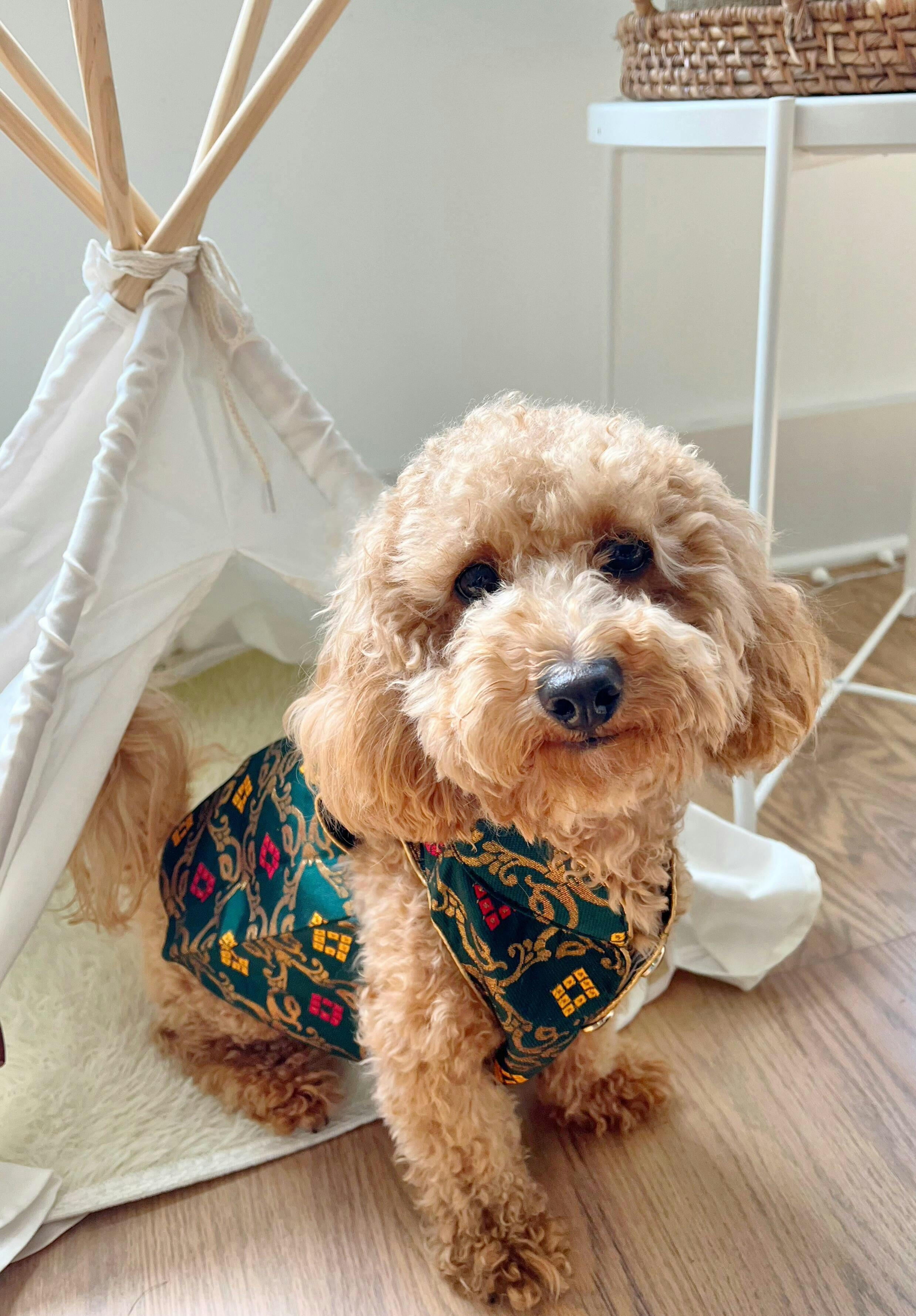Elegant, earthy, and effortlessly royal — the Dark Green Sherwani is a timeless classic for your four-legged king. Crafted in a deep green fabric with intricate embroidery and warm gold accents, this piece exudes sophistication. Finished with contrast piping and regal buttons, it’s the perfect pick for evening weddings, formal events, or any occasion where your pup needs to impress with understated charm.